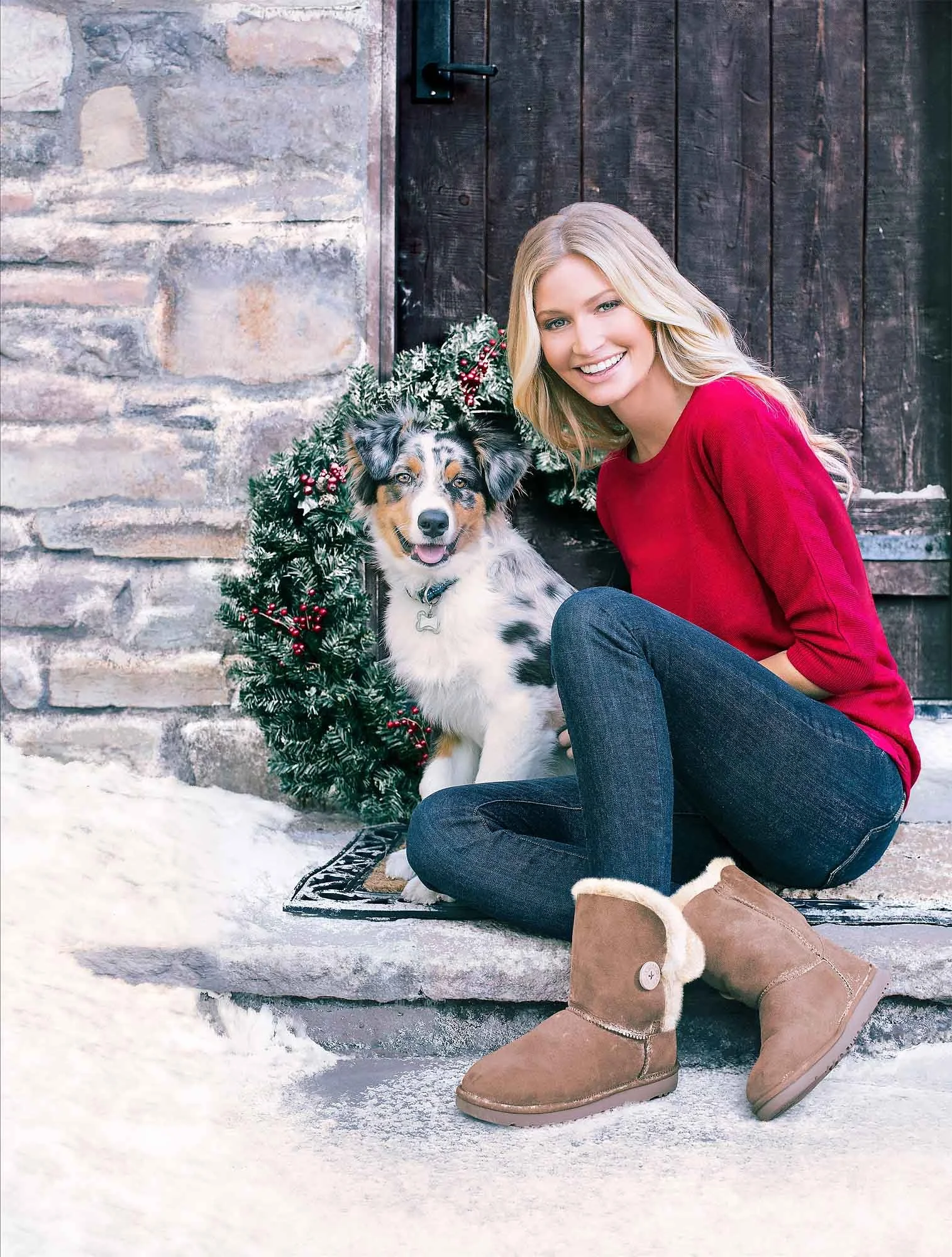 This image was originally photographed in the summer. I added snow and frost, adjusted the color of the UGG boots, and completed general cleanup throughout the image. The canvas was extended on the left to accommodate additional text and graphics.
